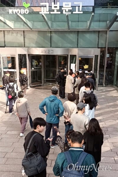 ▲ 한강 작가의 노벨문학상 수상 다음날인 11일 오전 8시께, 아직 문을 열지 않은 서울 종로구 교보문고 광화문점 앞에 한 작가의 책을 구입하려는 이들이 줄을 서 있다.