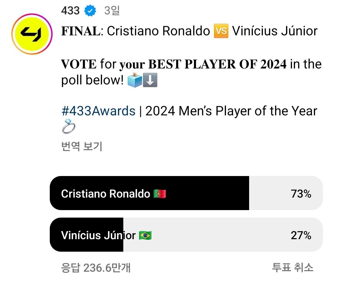 433 전세계 토너먼트 팬투표 선정,