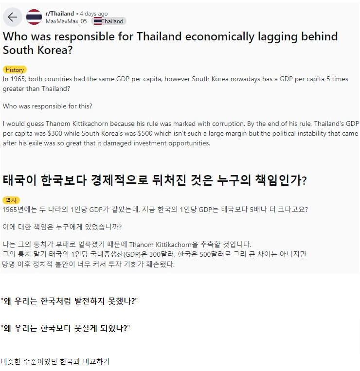 1950~60년대 잘 살았던 나라 사람들이 인터넷에 올리는 질문