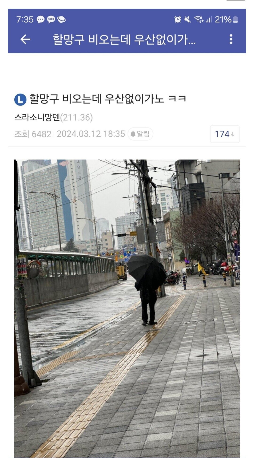 할망구 비 오는데 우산 없이 가노 ㅋㅋㅋㅋ.jpg