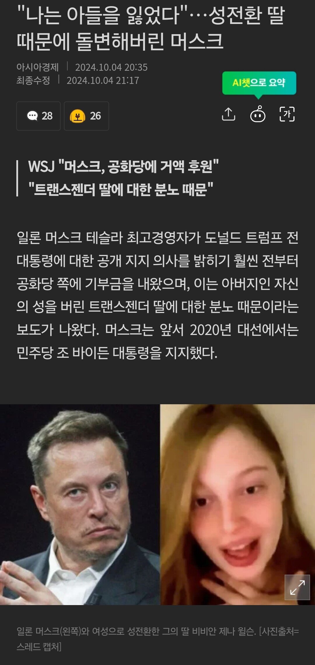 원래 2020년에 바이든 지지하다가 아들 성전환 이후 아들을 잃게되자 그후 공화당 지지자가 된 것으로...