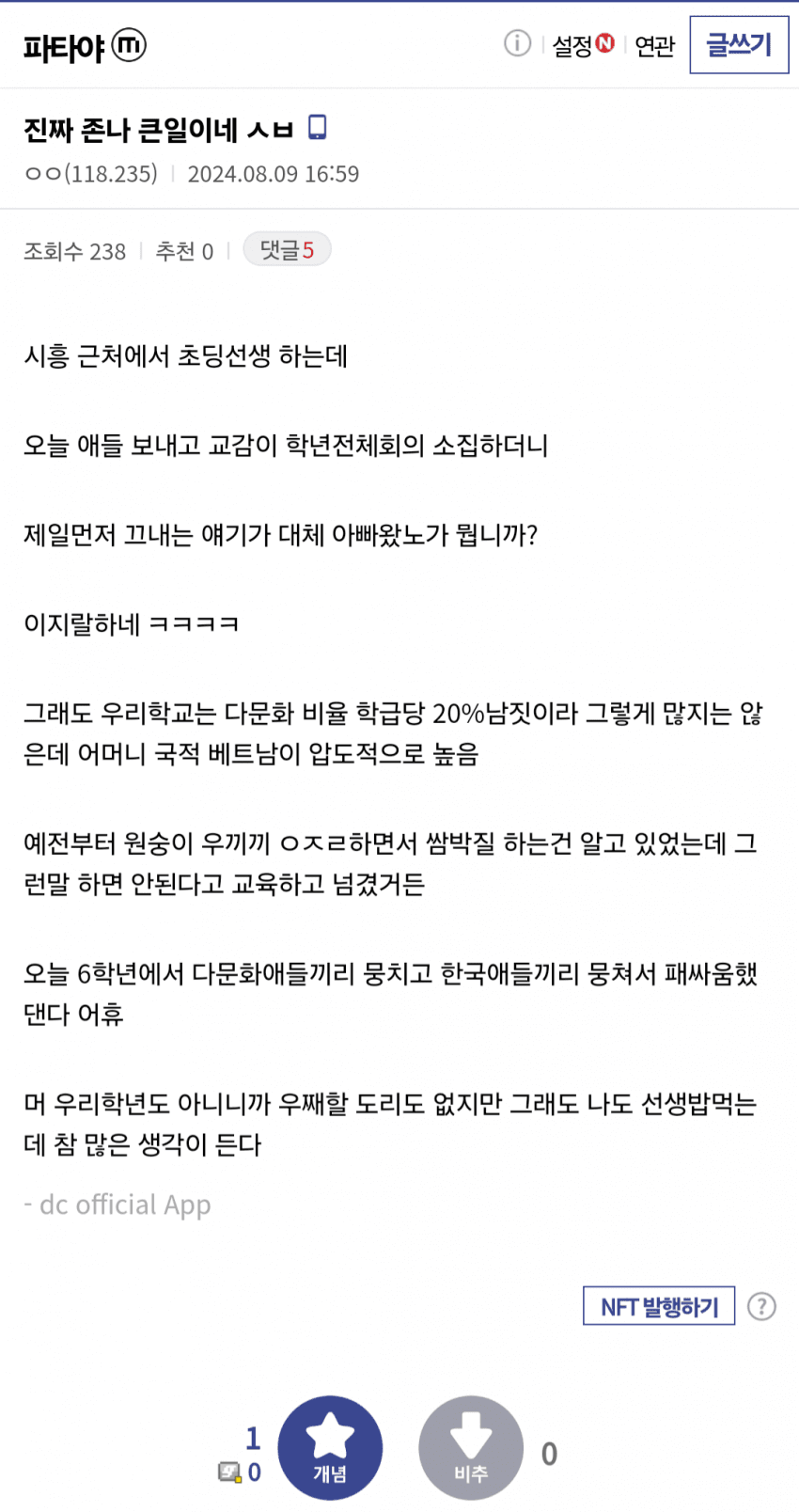 요즘 인종차별 갈등이 일어난다는 초등학교