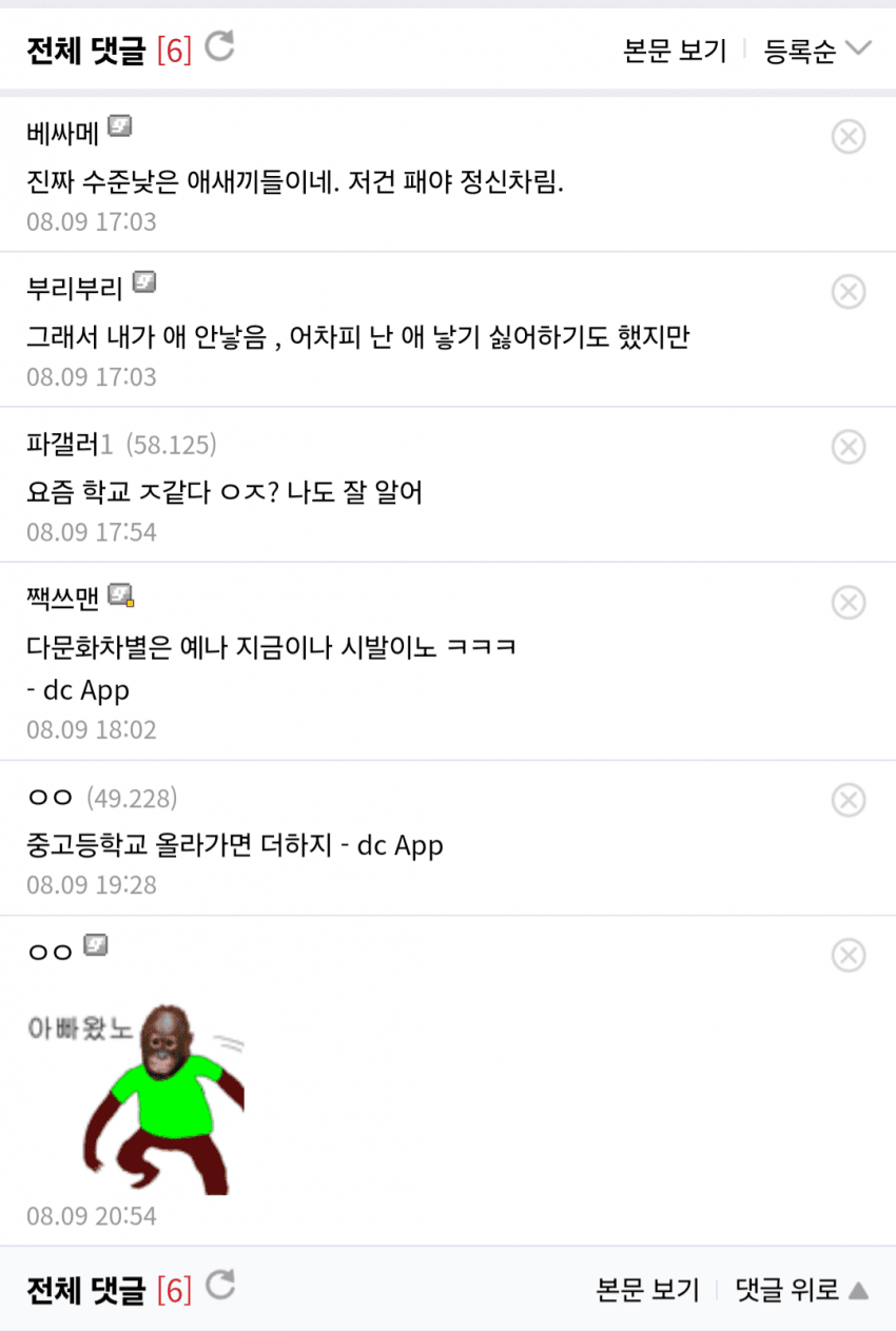 친부가 누군지도 모르는 자식을 희화화하며 동남아 혼혈 친구들을 비하하는 비속어