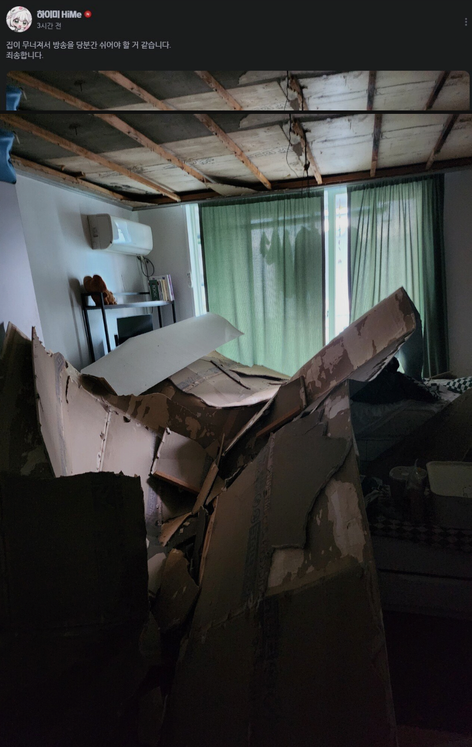 천장이 무너졌다 안카요