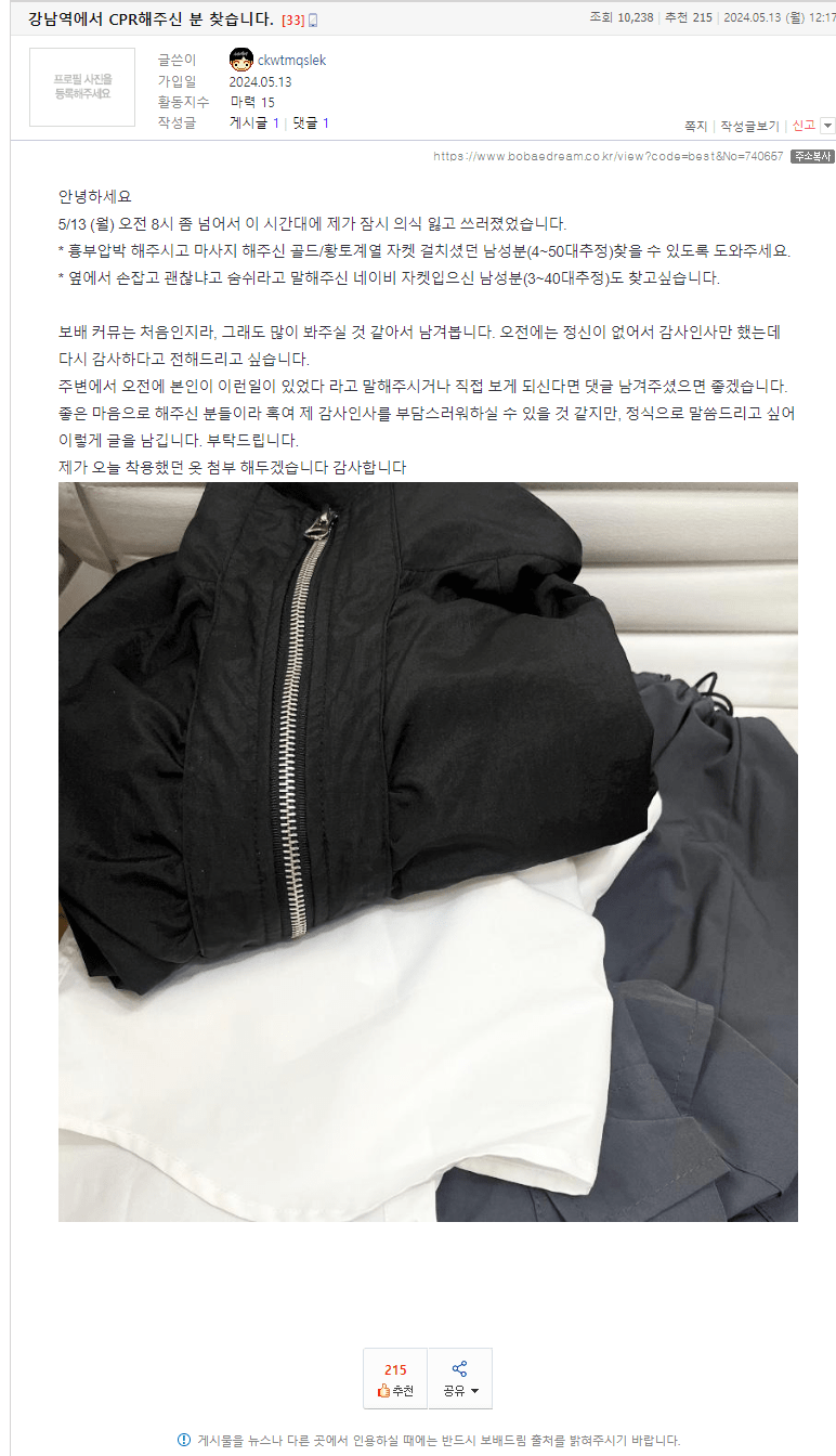 펌) 강남역에서 CPR 해주신 분 찾습니다.