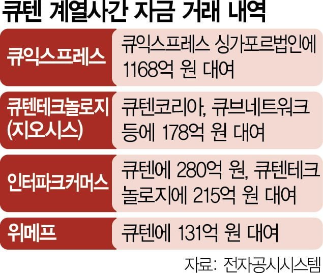 큐텐 계열사간 자금거래내역