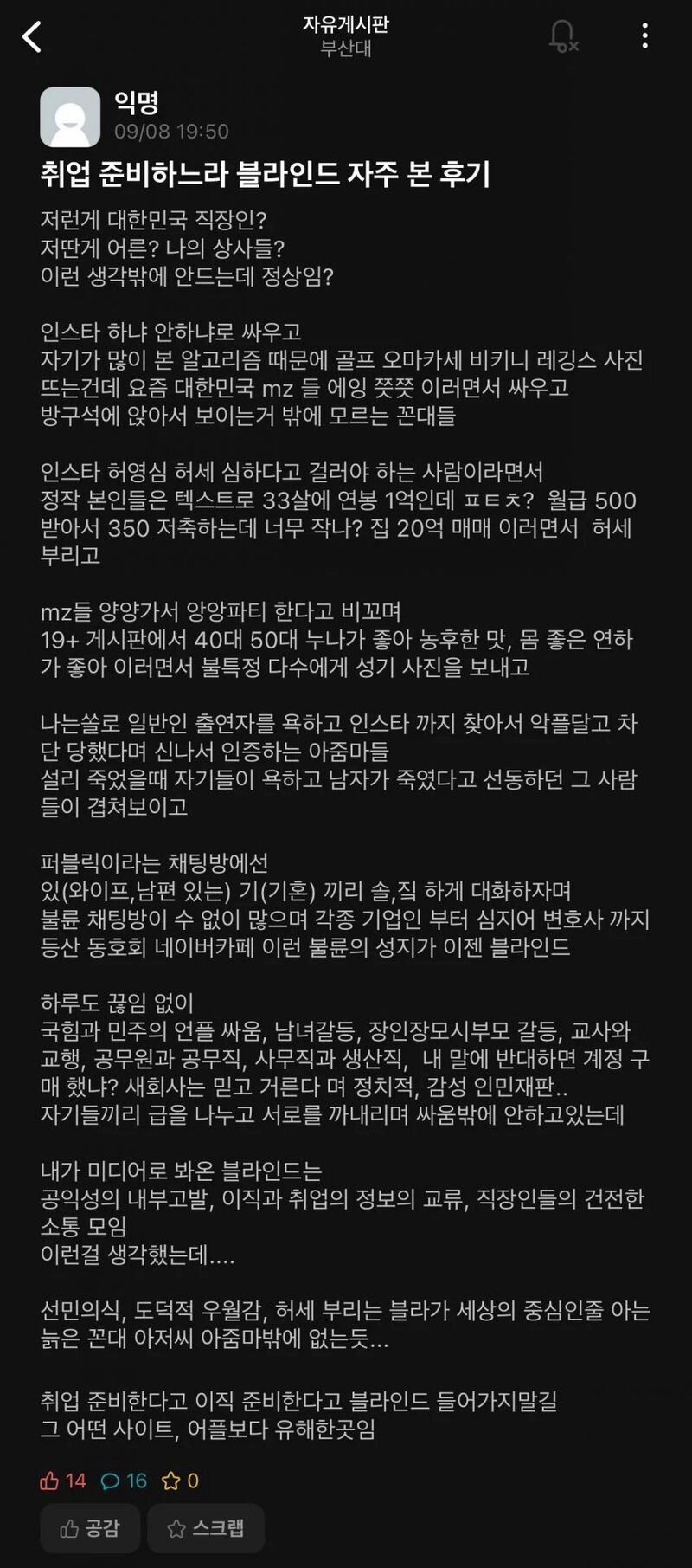 부산대 취준생의 블라인드 탐방기