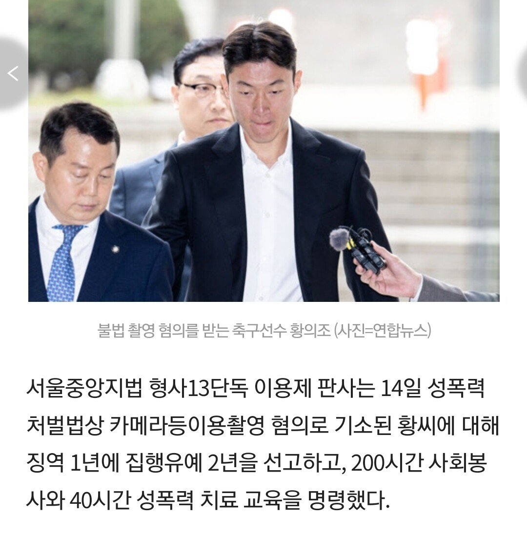 '불법 촬영 혐의' 황의조, 징역1년·집유2년(상보)