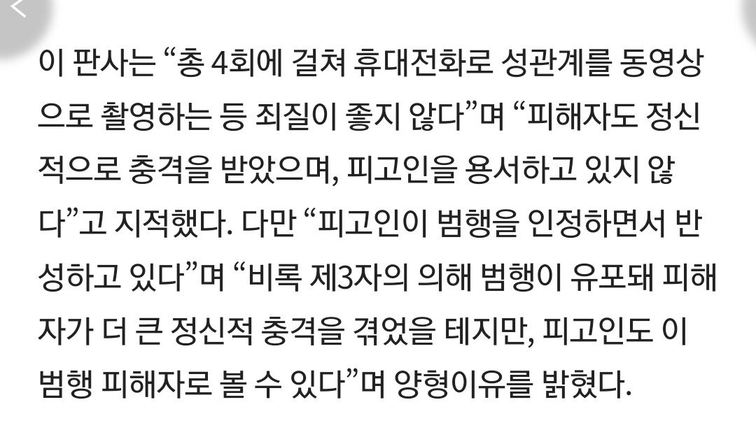 불법 촬영 영상을 형수가 유포한 점이 감안된 듯?