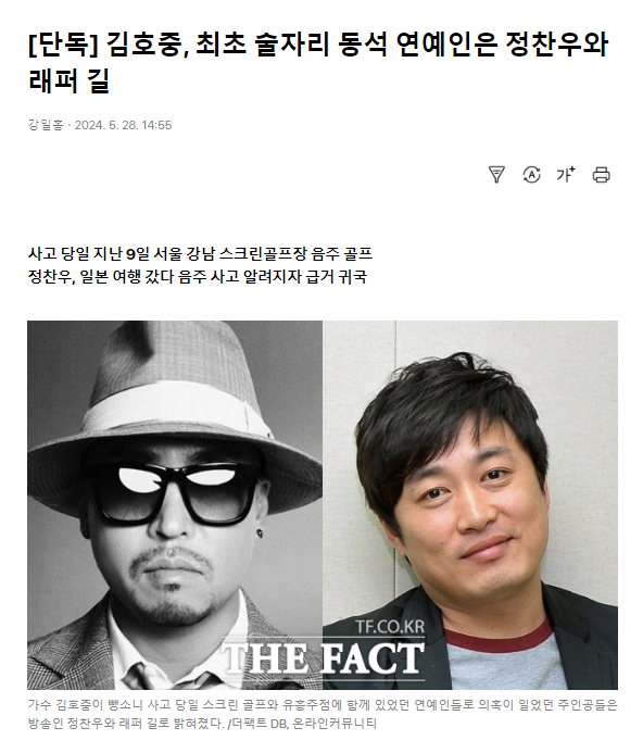 [단독] 김호중, 최초 술자리 동석 연예인은 정찬우와 래퍼 길