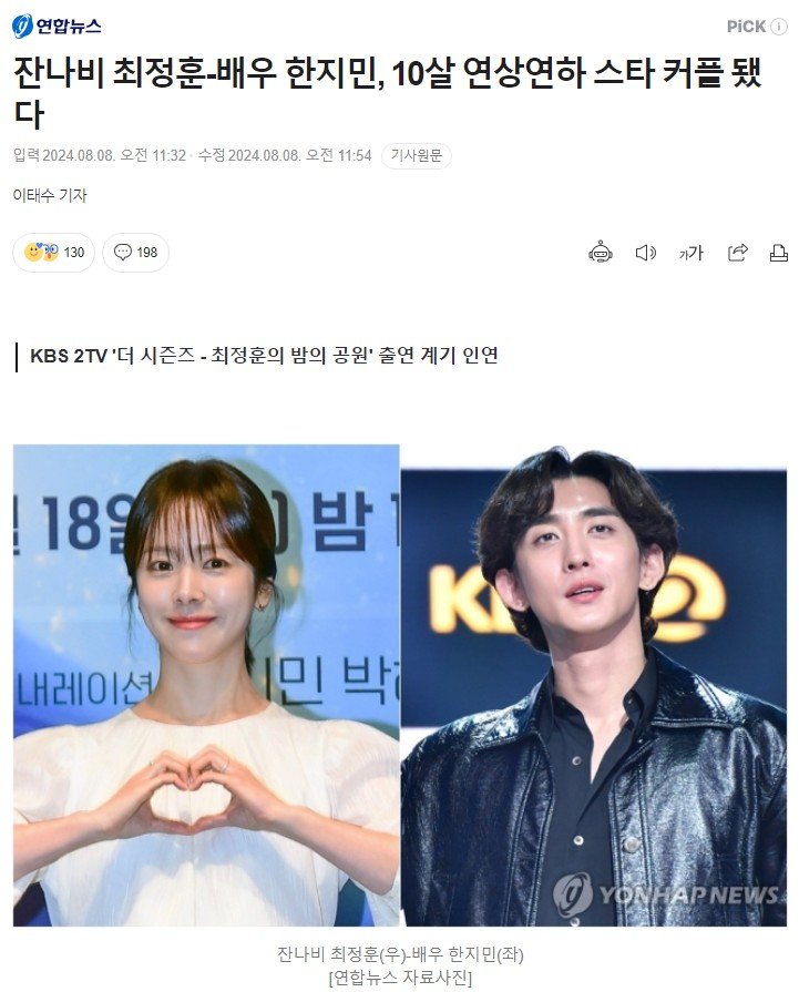 그룹사운드 잔나비의 최정훈(32)과 배우 한지민(42)이 열애 중이다.