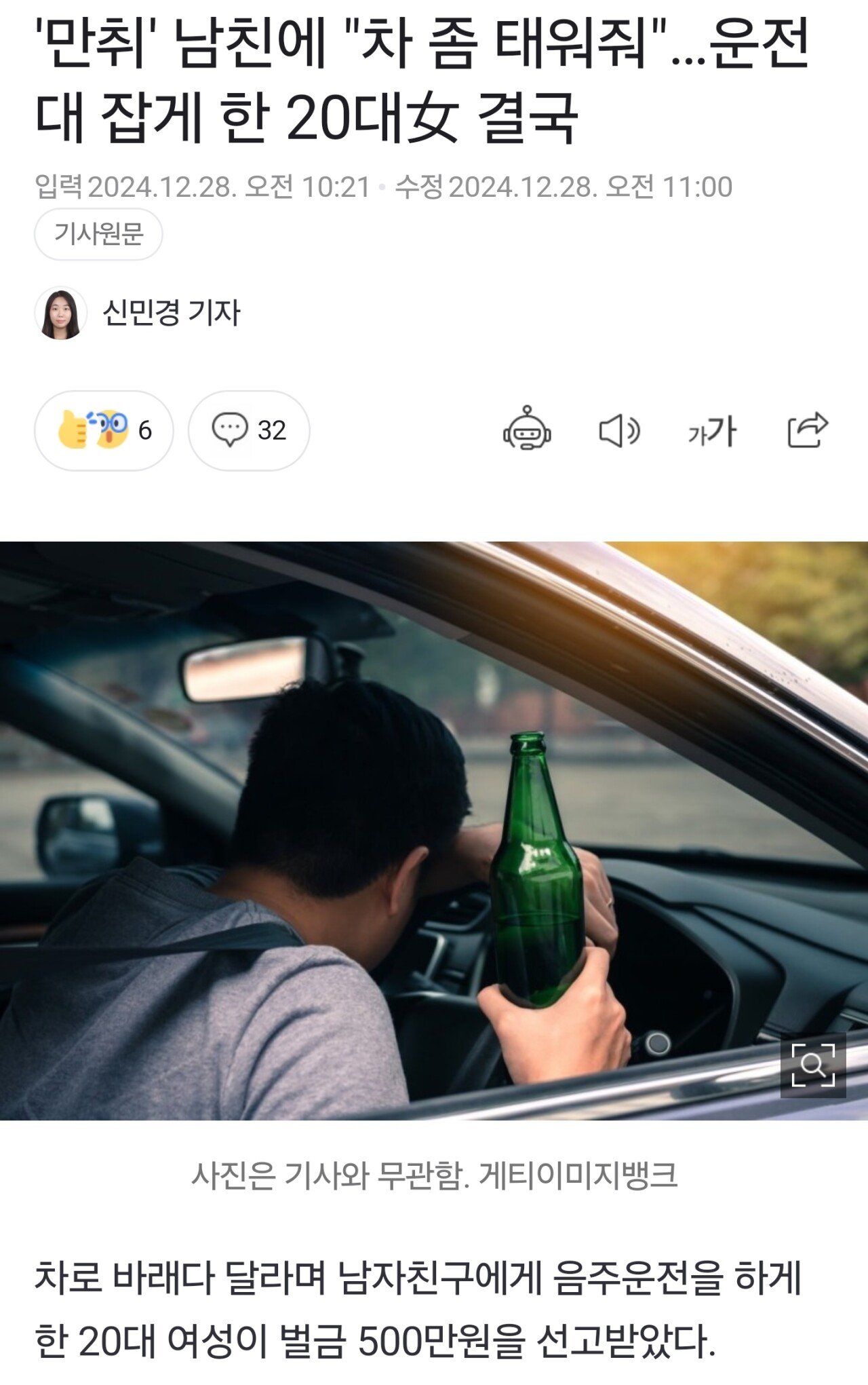 '만취' 남친에 "차 좀 태워줘"…운전대 잡게 한 20대女 결국