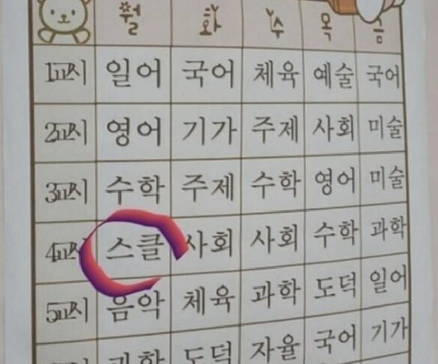 예전 사람은 모르는 학교 시간표에 있는거.jpg