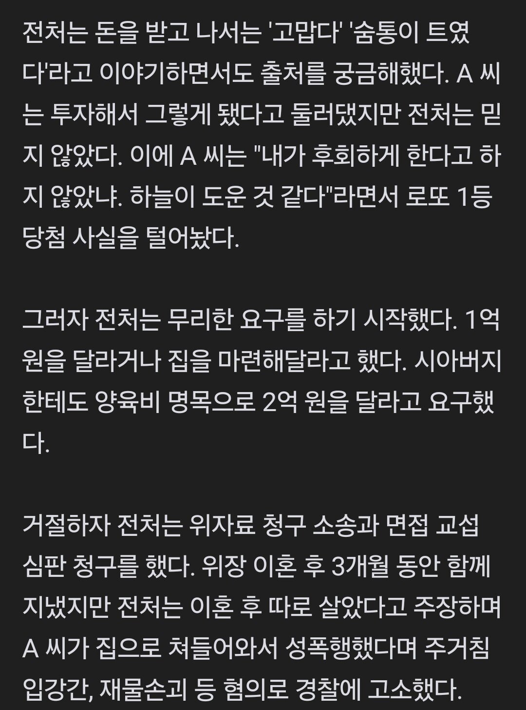 아이 둘 이혼남, 24억 로또 당첨 후 감옥갈 뻔…"전처가 성폭행 고소"