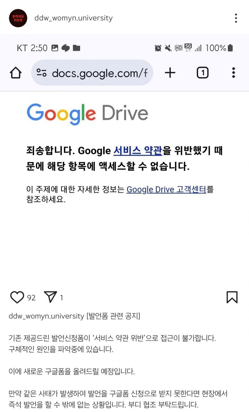 동덕여대 시위 참가 발언 신청 폼 날아간 이유