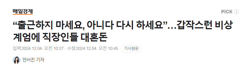 “출근하지 마세요, 아니다 다시 하세요”…갑작스런 비상계엄에 직장인들 대혼돈