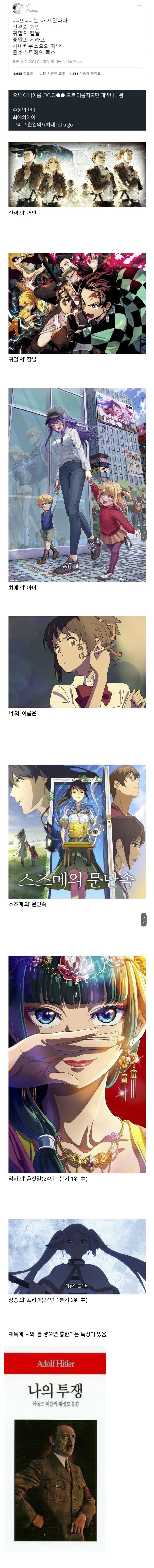 최근 유행하는 애니 특징