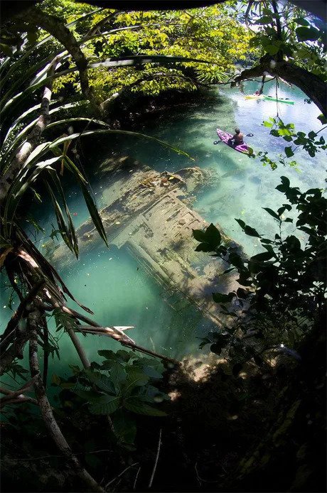 2차 세계 대전 때, 괌의 얕은 바다에 추락한 일본 전투기