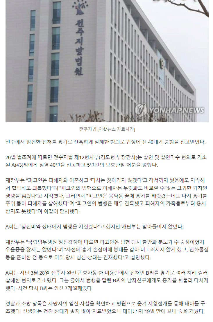 임신한 전처 잔혹 살해하고 신생아 숨지게 한 40대…징역 40년