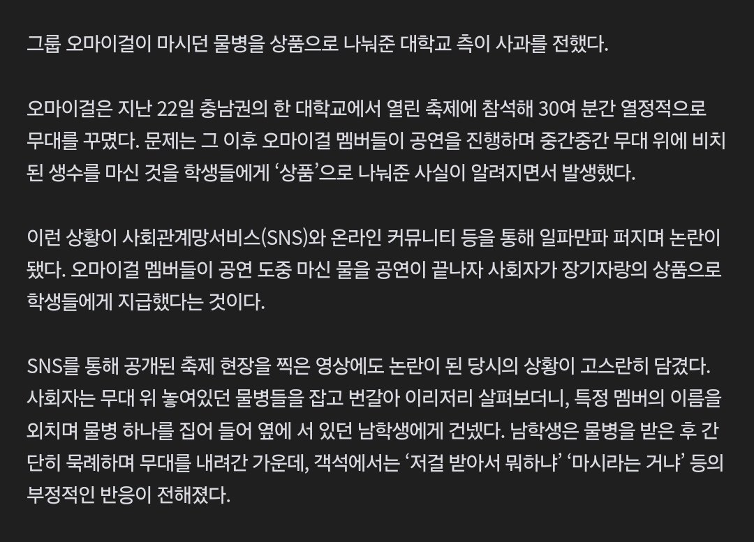 오마이걸이 마시던 물=상품? ‘성희롱 논란’ 결국 사과[스경X이슈]