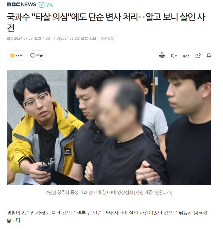 국과수 "타살 의심"에도 단순 변사 처리 알고 보니 살인 사건