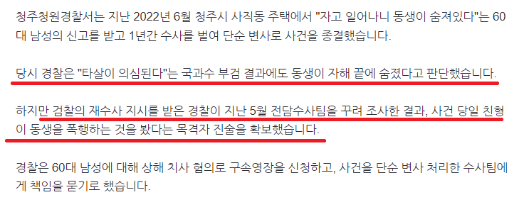 국과수가 타살 의심된다는데도 경찰은 자해로 종결 ㄷㄷ