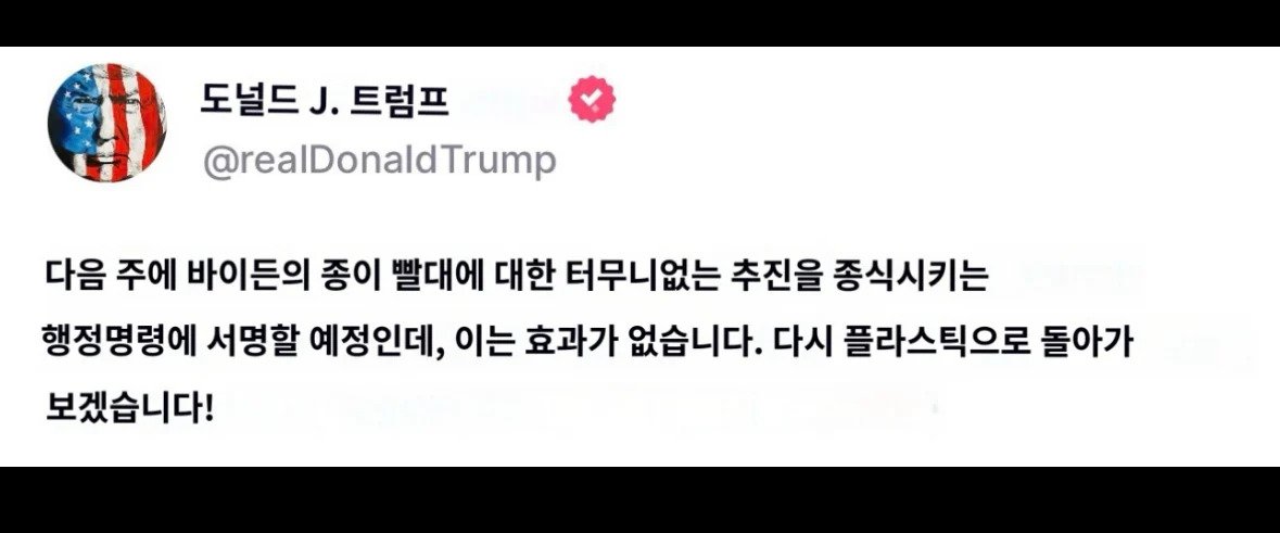 트럼프 “종이 빨대 시대 종결“