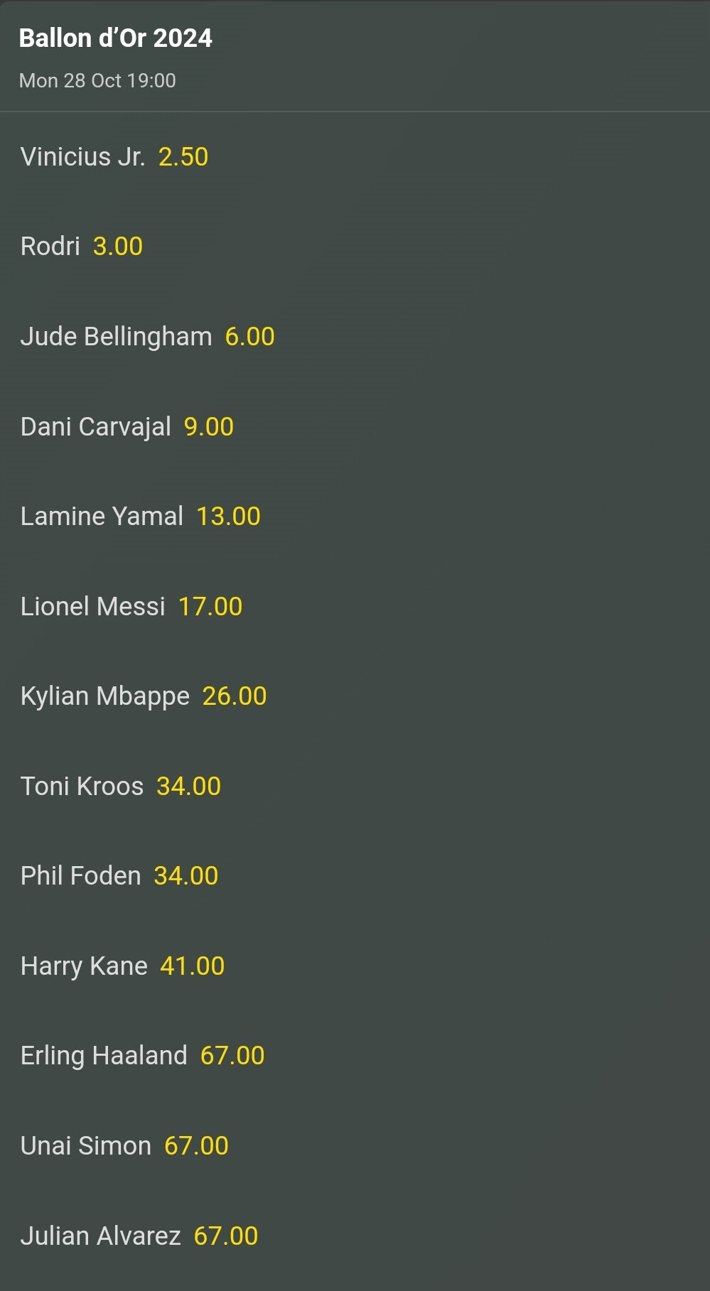 실시간 2024 발롱도르 배당률 순위 ㄷㄷ.JPG