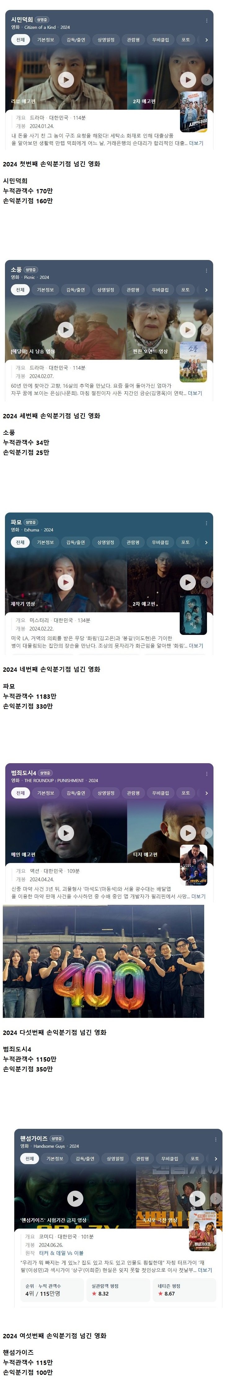 핸섬가이즈 115만 손익분기점 달성... 올해 6번째 손익분기점 달성영화 등극