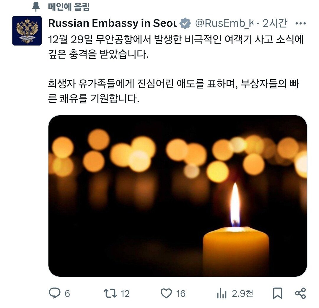 주한국 러시아대사관, 한국에서 벌어진 비극적인 사고에 애도