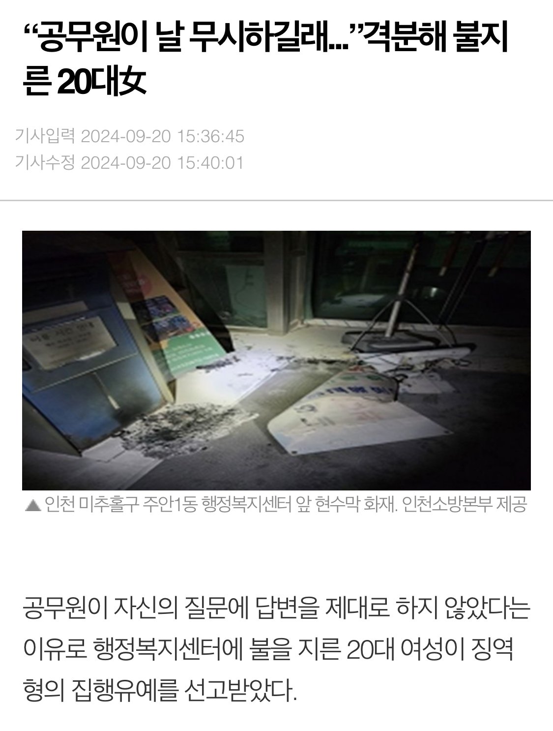 “공무원이 날 무시하길래...” 격분해 불지른 20대