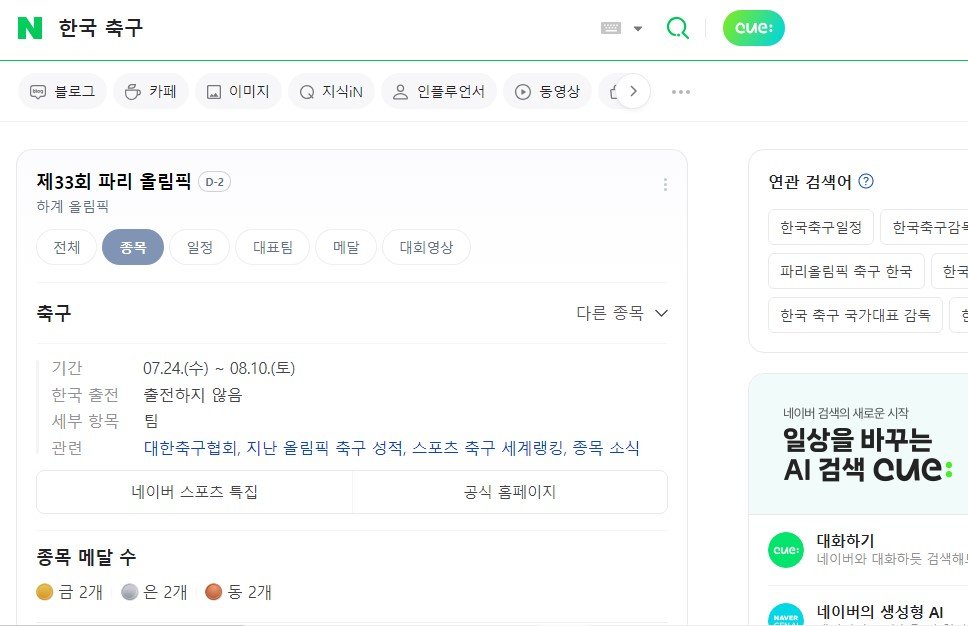 네이버에 한국 축구 검색 했는데