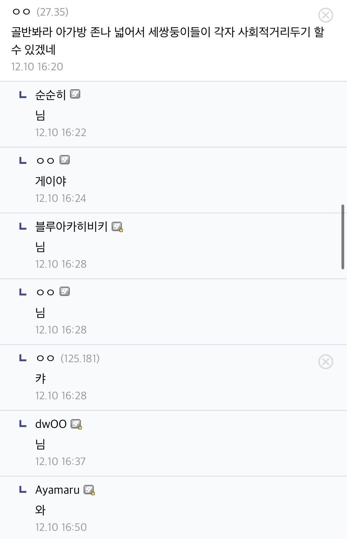 다른 사용자들에게 불쾌감을 줄 수 있는