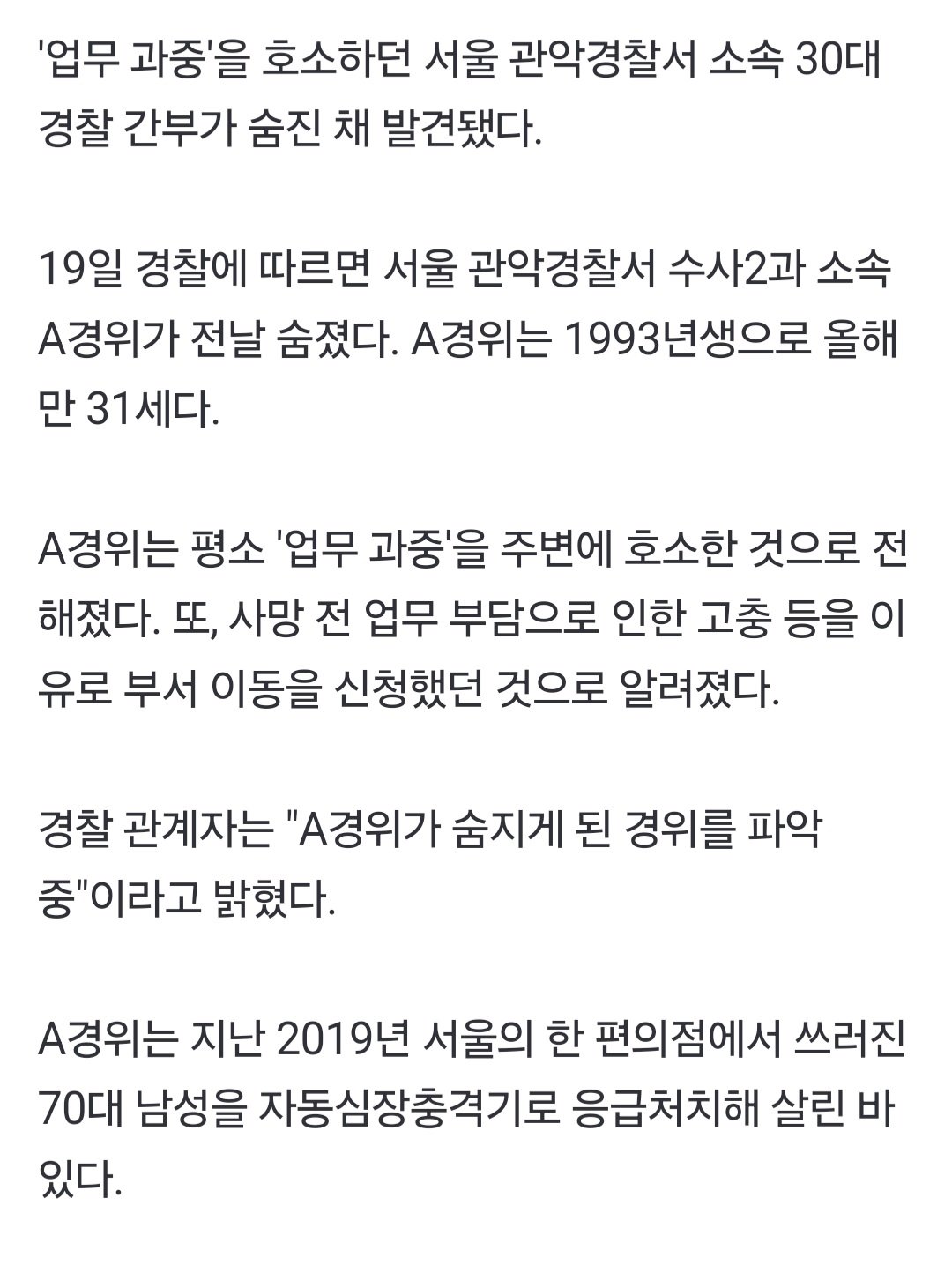 [단독] '업무 과중' 호소 31살 초급 경찰 간부 숨진 채 발견