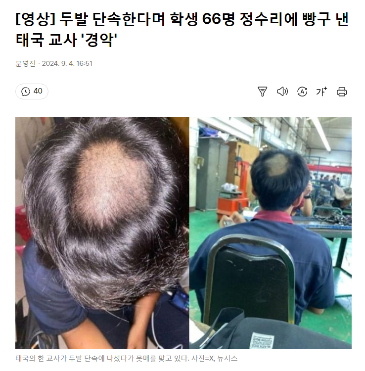 두발 단속한다며 학생 66명 정수리에 빵구 낸 태국 교사 '경악'