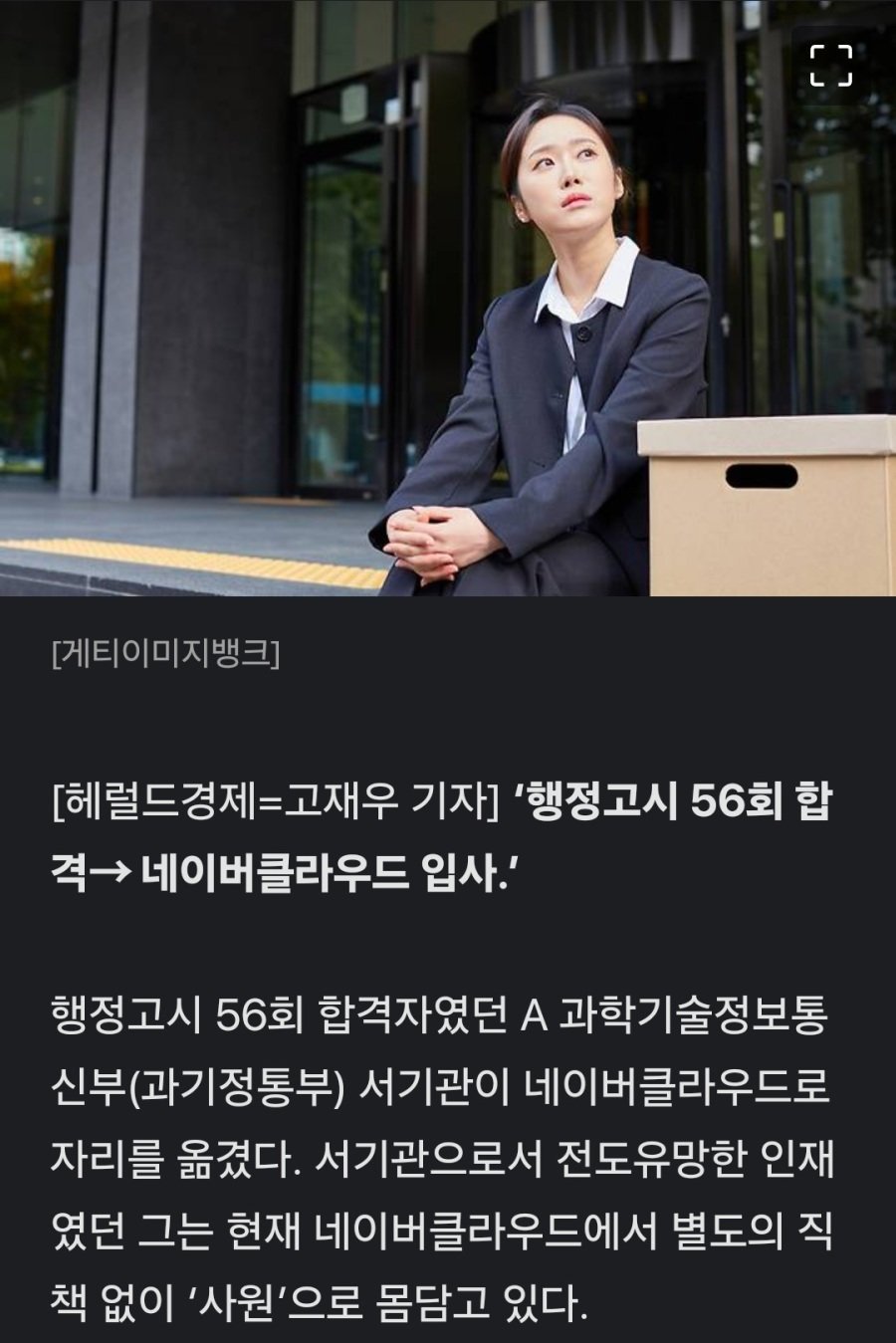 근데 얼마전 서기관이 네이버 클라우드사원으로 이직