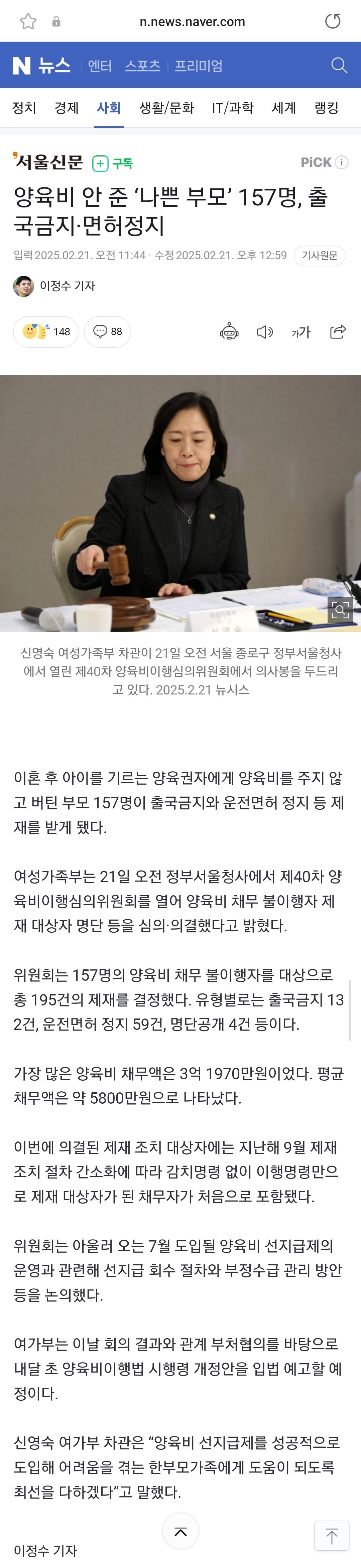 속보] 양육비 안 준 ‘나쁜 부모’ 157명, 출국금지·면허정지