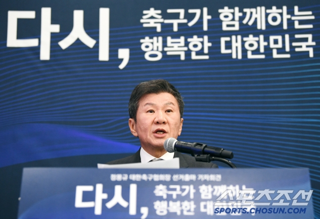 정 회장은 지난달 28일 4선 연임에 도전하기로 결정했다. 그는 2013년 KFA 수장에 올랐다. 2016년 '만장일치' 재선에 성공했고, 2021년 단독 입후보해 무투표로 3선 고지에 올랐다.