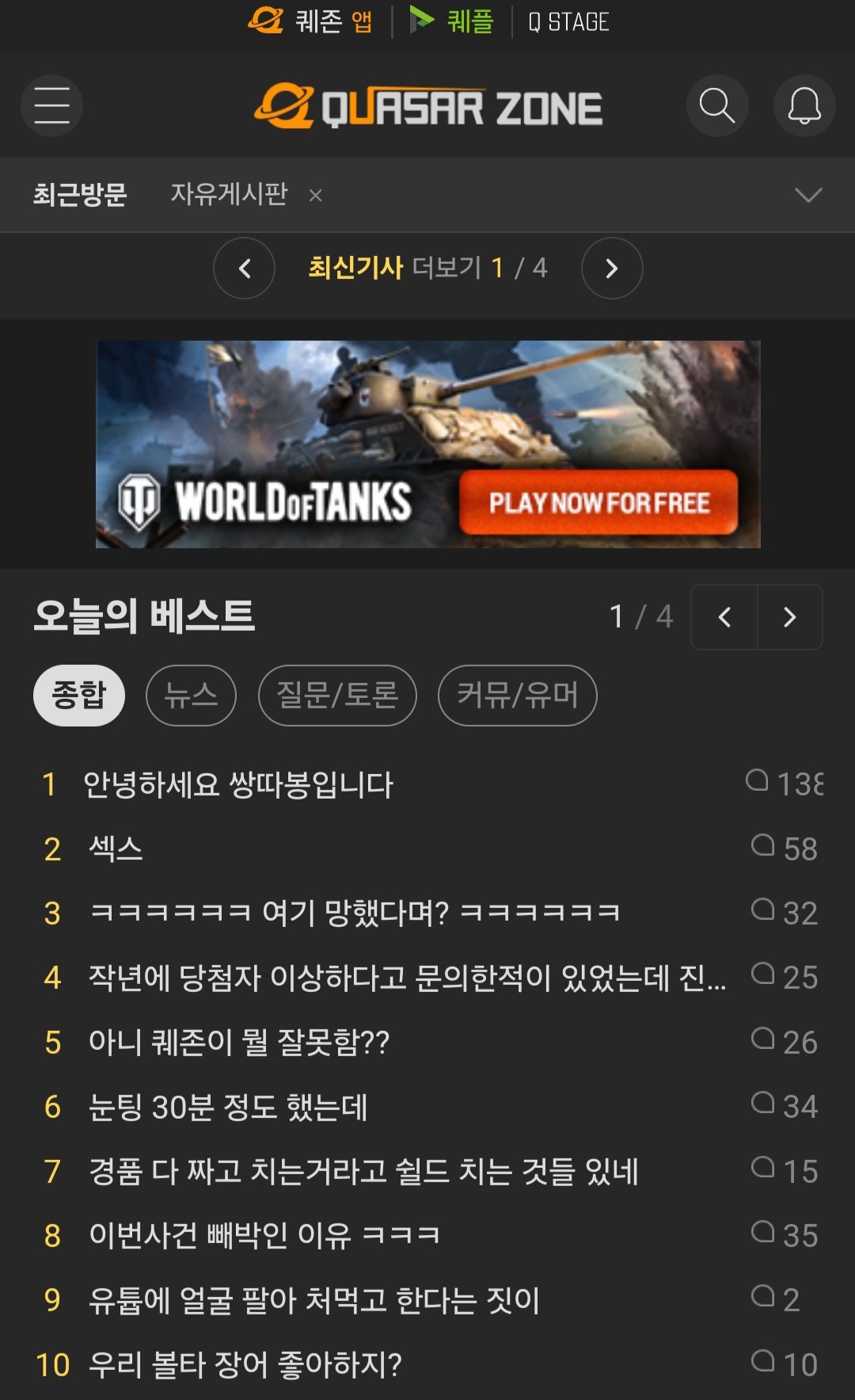 현재 퀘이사존 오늘의 베스트 2위와 3위 글.jpg
