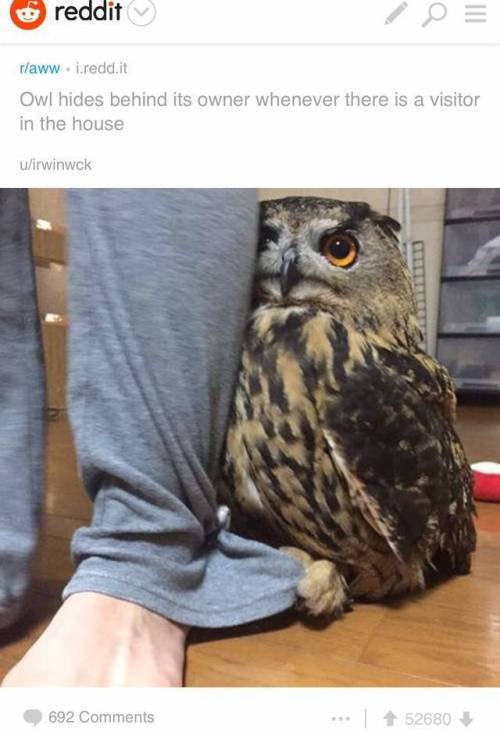 모르는 사람 올 때마다 주인뒤로 숨는 부엉이