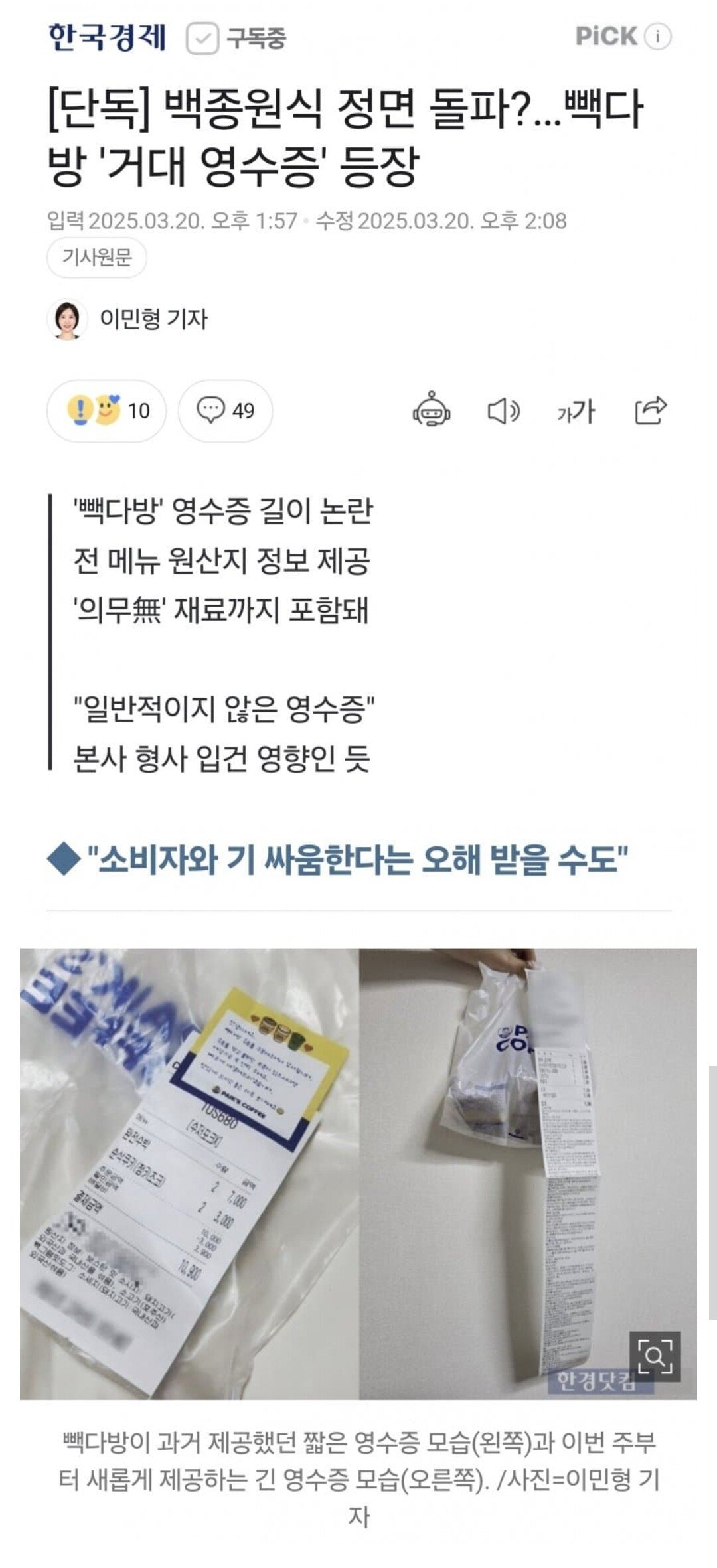 백종원 이번엔 소비자와 기싸움 논란