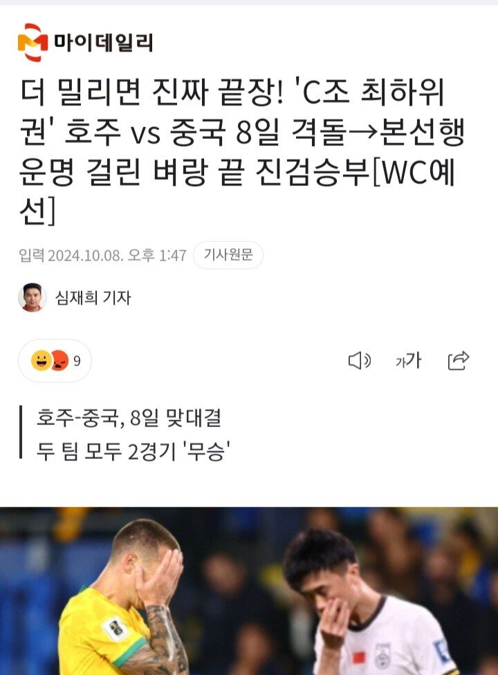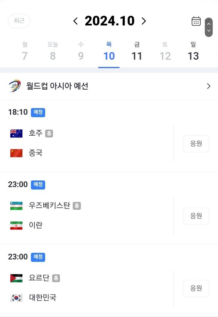 아니 네이버 축구기사 보는디 호주랑 중국 오늘 붙나? 해서 이상해서 네이버 축구일정을 보니여기서는 내가 원래 알듯이 10일인디??