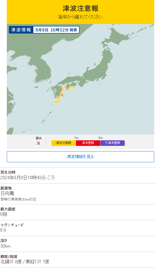 (속보) 일본 큐슈 규모 6.9 지진 발생