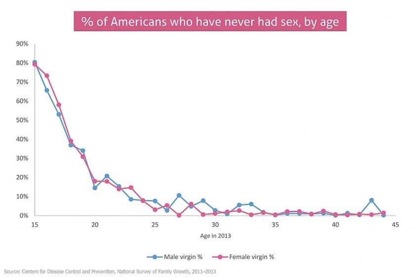 남녀 모두 만 20세 기준 80프로가 섹스를 이미 경험함