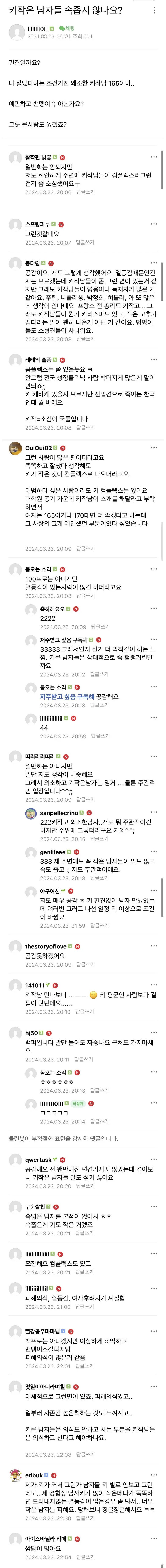 "키작은 남자들은 속이 좁지 않음?"