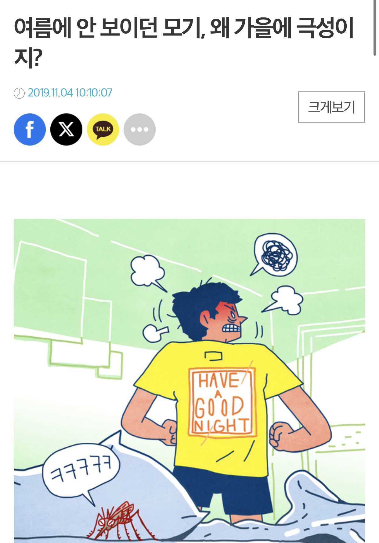"이제 여름 아닌 가을이 모기가 좋아하는 온도"