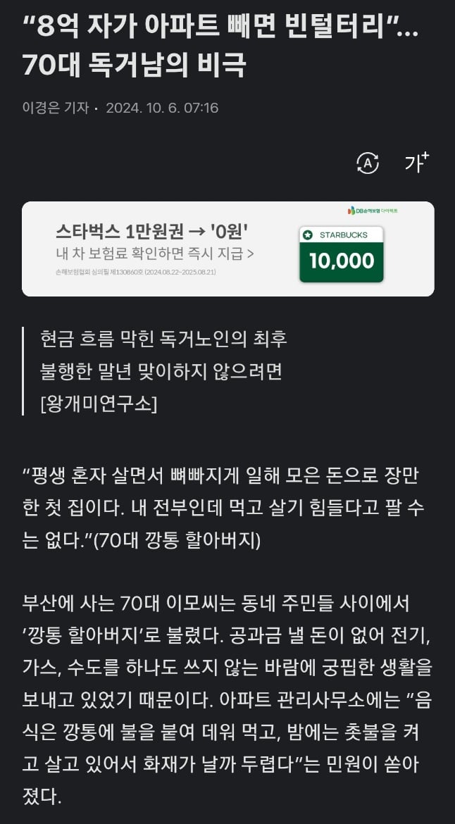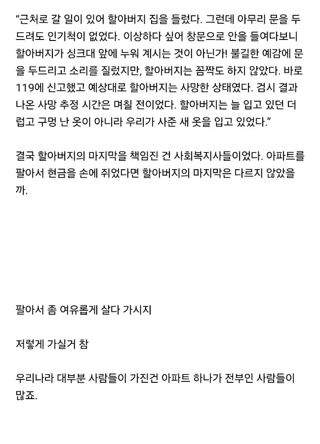 가진건 8억짜리 아파트 하나가 전부였던 어느 노인의 인생..