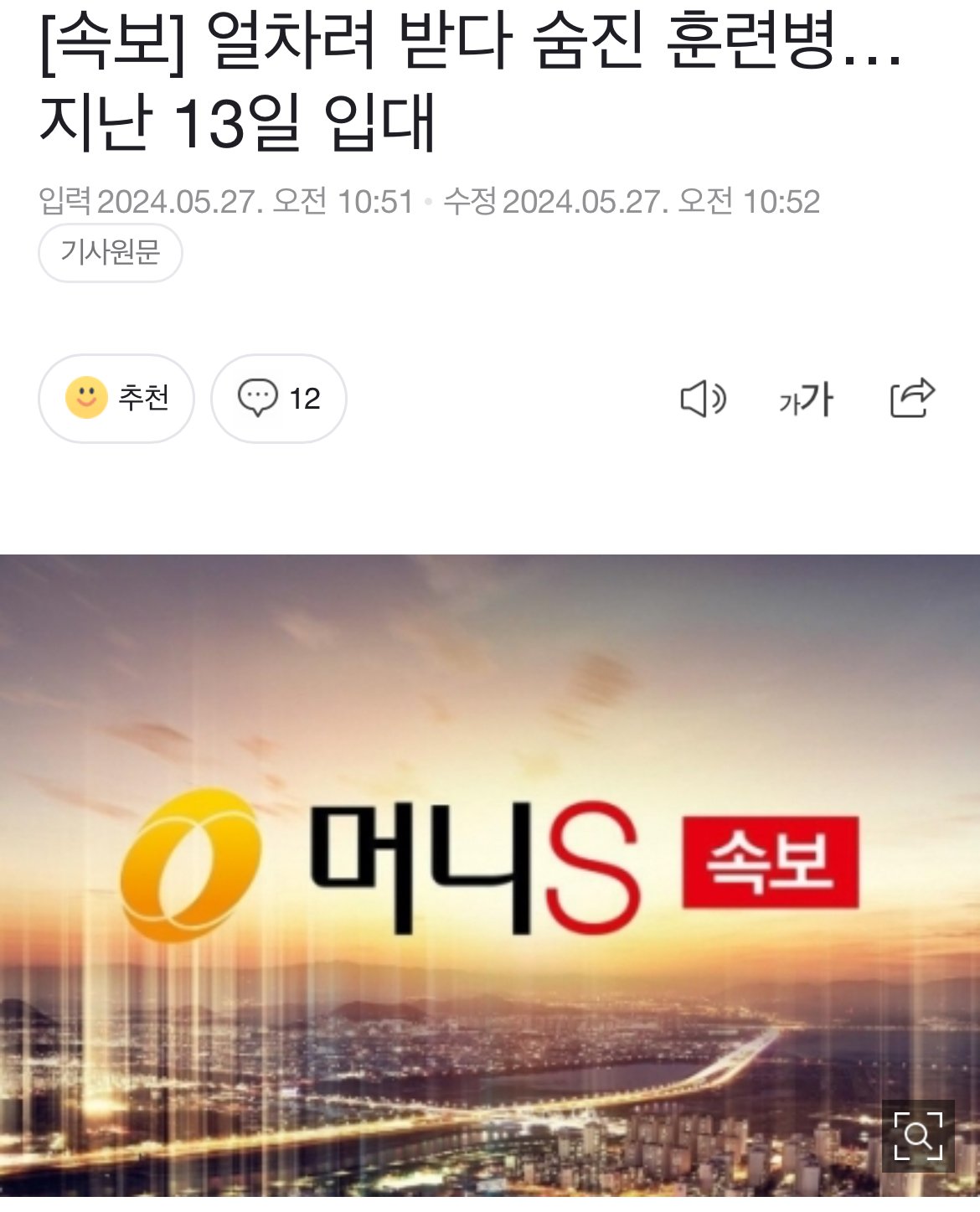 [속보] 얼차려 받다 숨진 훈련병… 지난 13일 입대