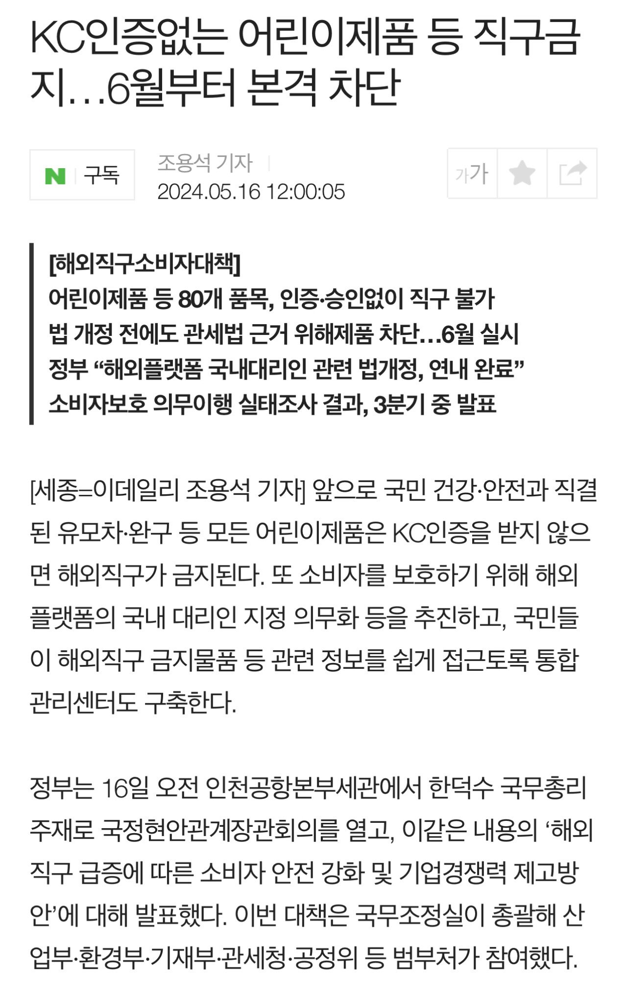 kc인증 없으면 직구금지 6월부터 시행ㅎㄷㄷ