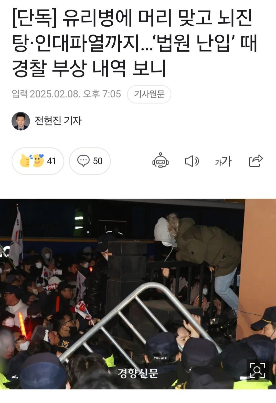 [단독] 유리병에 머리 맞아 뇌진탕 당한 경찰관...